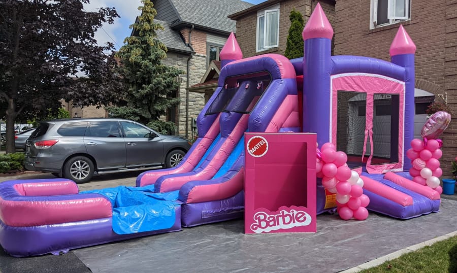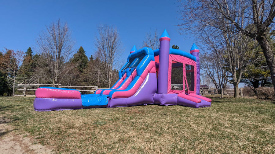 The Princess Cake 2.0 is our version of the classic Princess Cake with blue castle tops. It comes with a slide, pool, and basketball nets, which makes it an exciting and versatile inflatable play structure that is perfect for young children. The interior of the castle features a large bouncing area, a slide and a small pool at the bottom for even more fun. Additionally, the castle is equipped with basketball nets, offering a fun and active way for kids to play and engage with one another. Whether you're planning a birthday party, family gathering, or just looking for a unique and exciting way to keep the kids entertained, this bouncy castle is sure to provide hours of fun and laughter. It is suitable for all ages and can be used wet or dry.