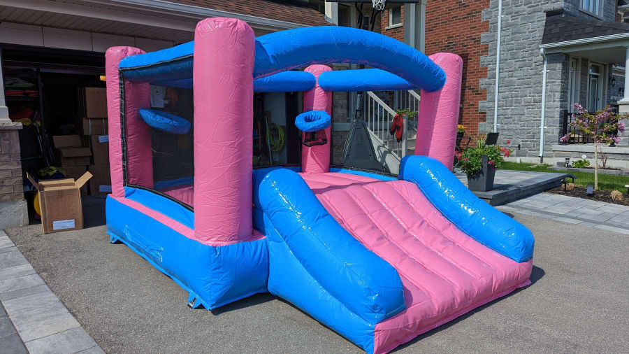 Every rental comes with a blower to inflate the bouncy castle, stakes/pegs to anchor your inflatable to the ground ( if bouncer is on a hard surface where stakes cannot be used sandbags can be provided at an additional cost) and tarps if needed. All you need is the space and an outlet to plug your blower into. Recommended items to have on hand - extension cords, a dolly or cart to move your bouncer to your set up area and of course kids who love to have fun!