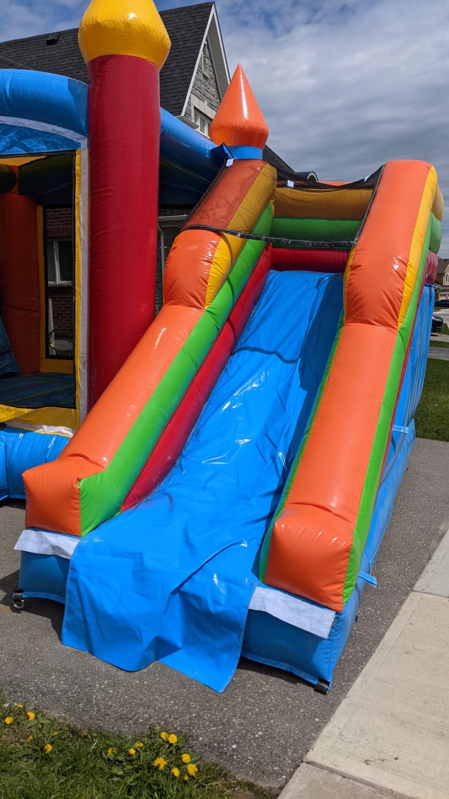 Every rental comes with a blower to inflate the bouncy castle, stakes/pegs to anchor your inflatable to the ground ( if bouncer is on a hard surface where stakes cannot be used sandbags can be provided at an additional cost) and tarps if needed. All you need is the space and an outlet to plug your blower into. Recommended items to have on hand - extension cords, a dolly or cart to move your bouncer to your set up area and of course kids who love to have fun! *this inflatable requires a water garden hose, (if using water) which is to be attached to the hose straps on the unit*