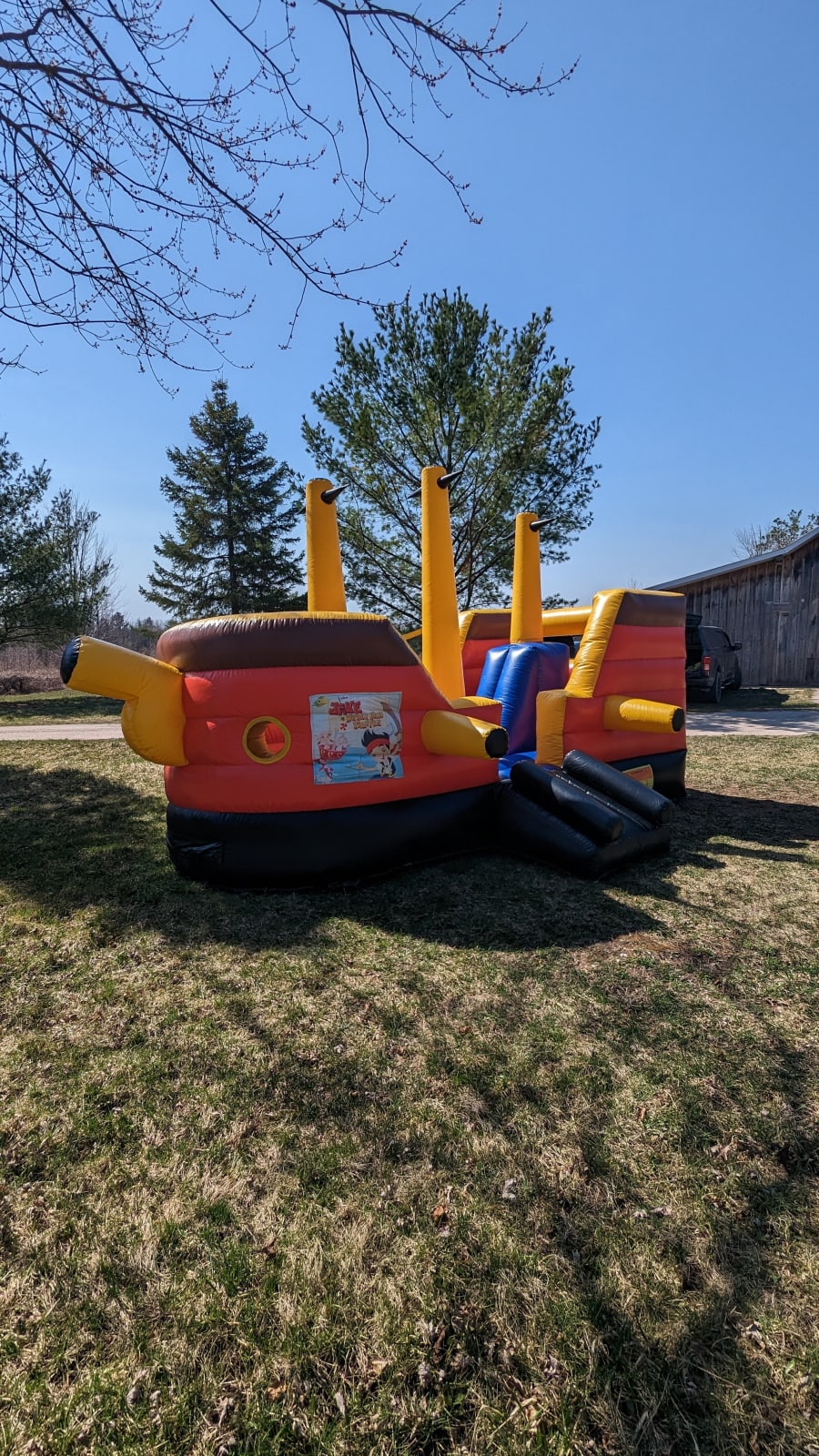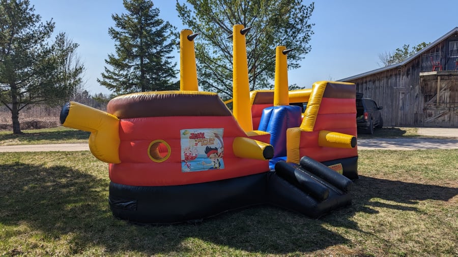 Ahoy Matey! Perfect bouncer for those little pirates ready for adventure. With tall inflatable masts kids can jump and wrestle them for added fun and excitement. This fun and interactive activity inflatable is perfect for children's birthday parties and events. It is suitable for small children.