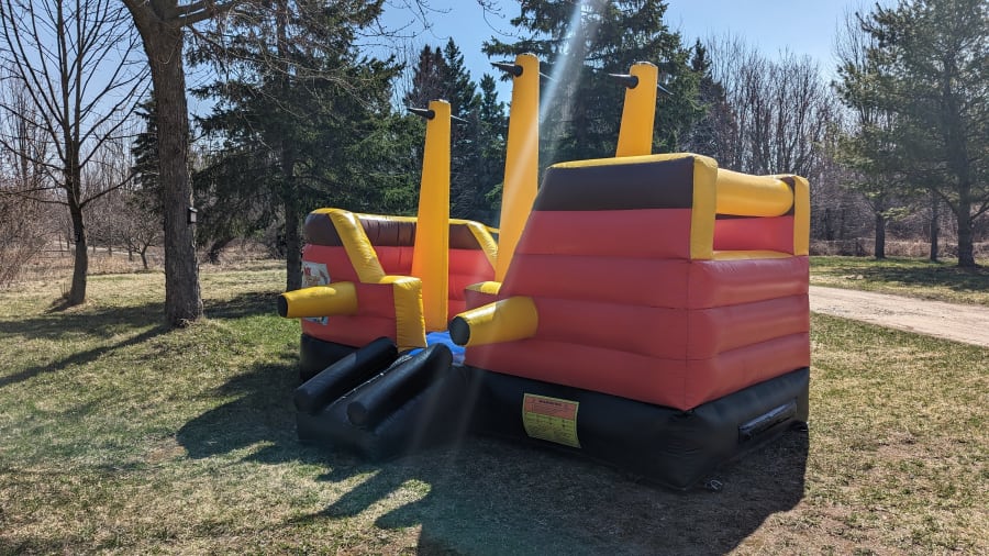 Every rental comes with a blower to inflate the bouncy castle, stakes/pegs to anchor your inflatable to the ground ( if bouncer is on a hard surface where stakes cannot be used sandbags can be provided at an additional cost) and tarps if needed. All you need is the space and an outlet to plug your blower into. Recommended items to have on hand - extension cords, a dolly or cart to move your bouncer to your set up area and of course kids who love to have fun!