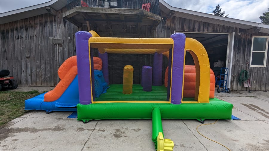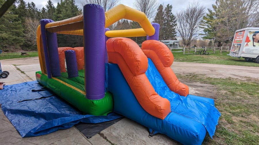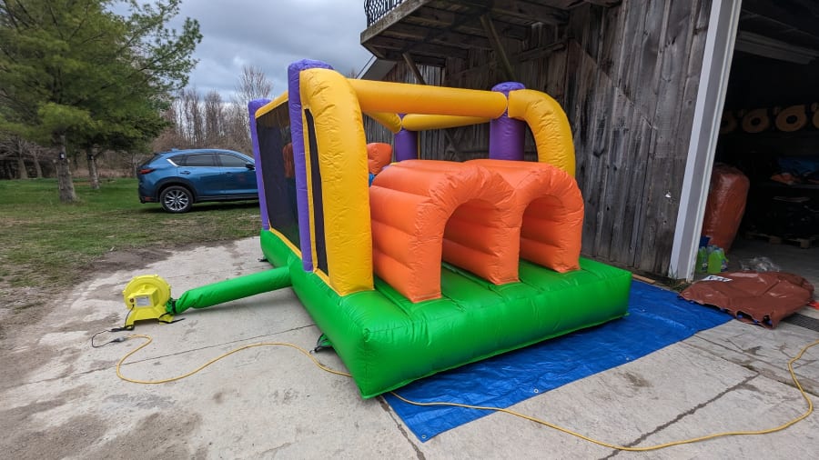 Every rental comes with a blower to inflate the bouncy castle, stakes/pegs to anchor your inflatable to the ground ( if bouncer is on a hard surface where stakes cannot be used sandbags can be provided at an additional cost) and tarps if needed. All you need is the space and an outlet to plug your blower into. Recommended items to have on hand - extension cords, a dolly or cart to move your bouncer to your set up area and of course kids who love to have fun!