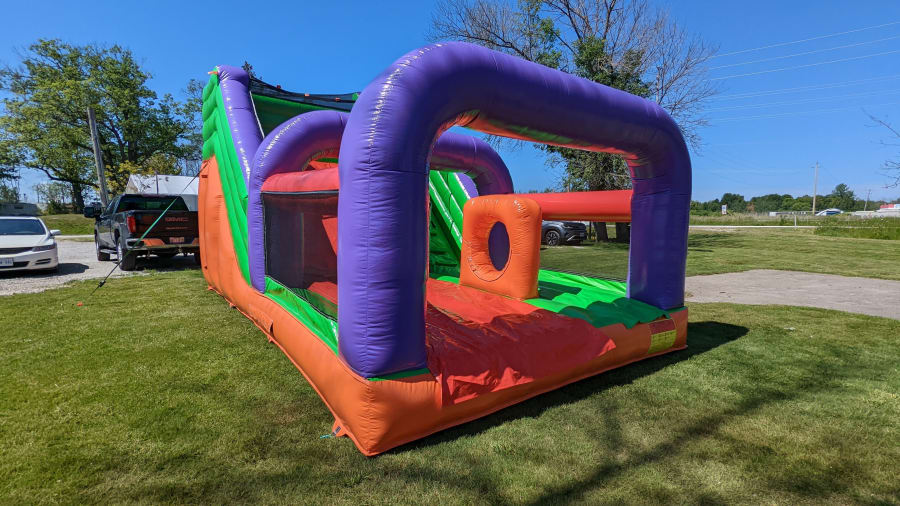 Dusty XXL is our largest, our biggest, our heaviest bouncy! When we say it's big, it's really big! It is an impressive and thrilling inflatable that is perfect for kids big and small. With its massive size and towering slide, this bouncy castle is sure to be the centerpiece of any event or party. The large bouncing area provides ample space for kids to jump and play, while the big slide offers a fast and exciting way to come down and enter the play area. The slide is fast and steep, definitely a thrill! The bigger kids really love this one! Whether you're planning a birthday party, family gathering, or just looking for a unique and thrilling way to keep kids entertained, this XXL bouncy is sure to provide endless hours of fun and excitement.